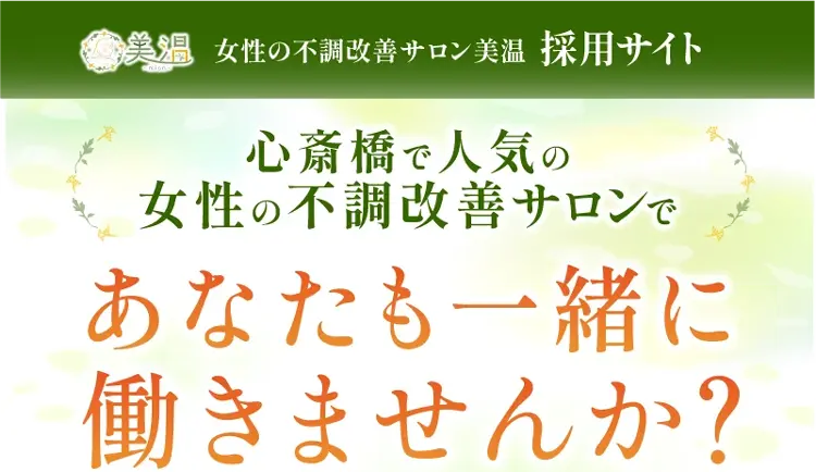 お客様から選ばれ続けるサロン、セラピストを目指して、これからお客様たちに対して私たちは何ができるのか?を一緒に考えながら、「美温でしょ!」と言ってもらえるようなサロンを一緒に作っていきませんか?ぜひ応募お待ちしております!